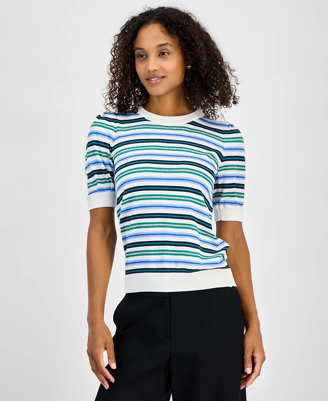 T Tahari Women's Striped Puff-Sleeve Sweater