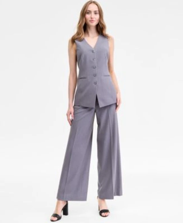 Tahari Asl Bi Stretch Tunic Vest Wide Leg Pants