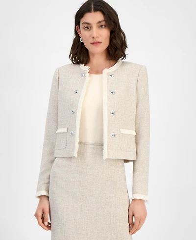 Tahari Asl Women's Cropped Button-Front Tweed Jacket