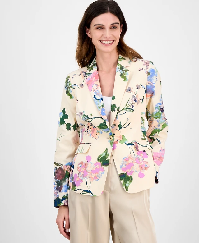 Tahari Asl Women's Floral-Print One-Button Jacket
