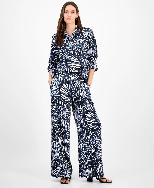 Tahari Asl Women's Printed High-Rise Wide-Leg Pants