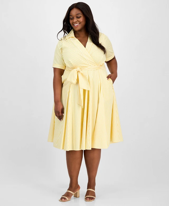 Tahari Plus Collared V-Neck Short-Sleeve Dress
