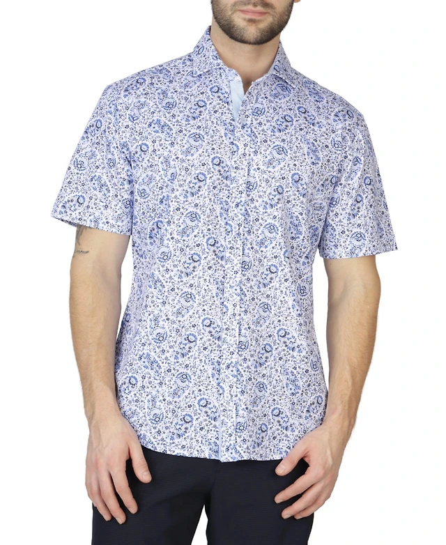 Tailorbyrd Men's Floral Paisley Knit Short Sleeve Shirt