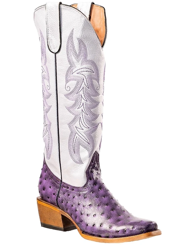 Tanner Mark Women's Merritt Ostrich Print Western Boots - Broad Square Toe