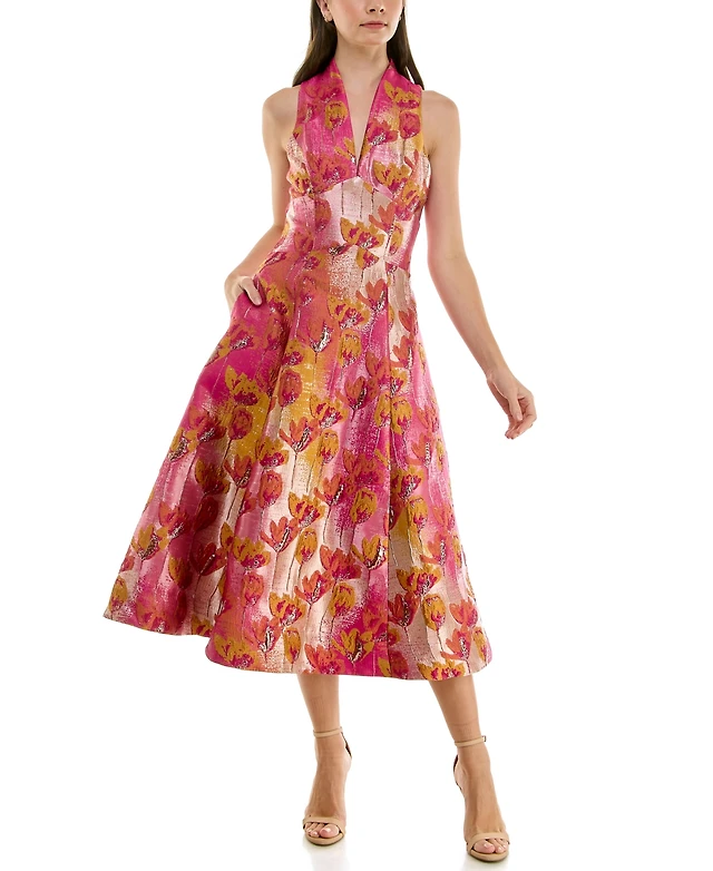 Taylor Women's Metallic Jacquard Sleeveless A-Line Dress