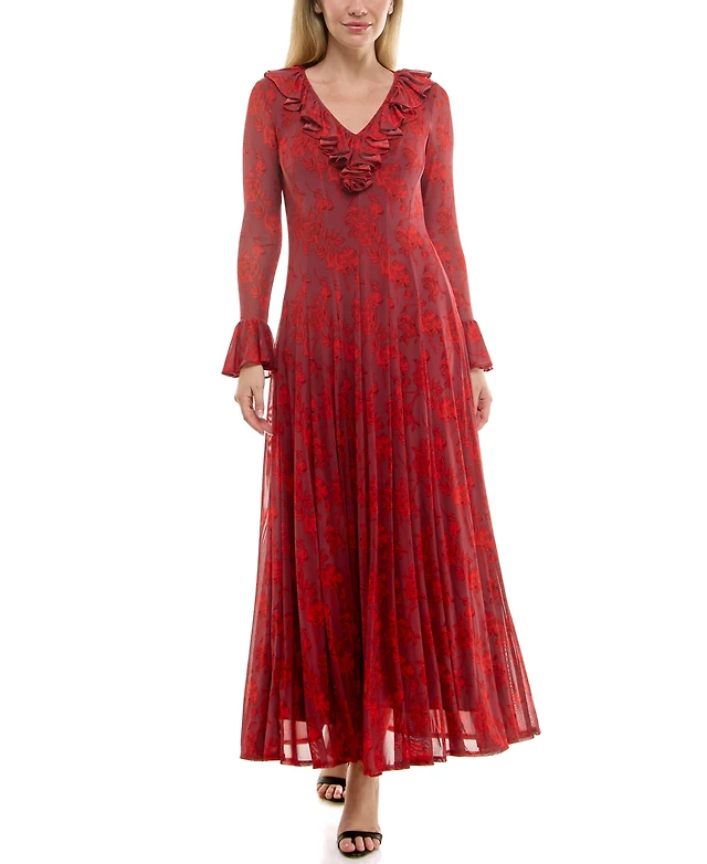 Taylor Women's Ruffled V-Neck Dress