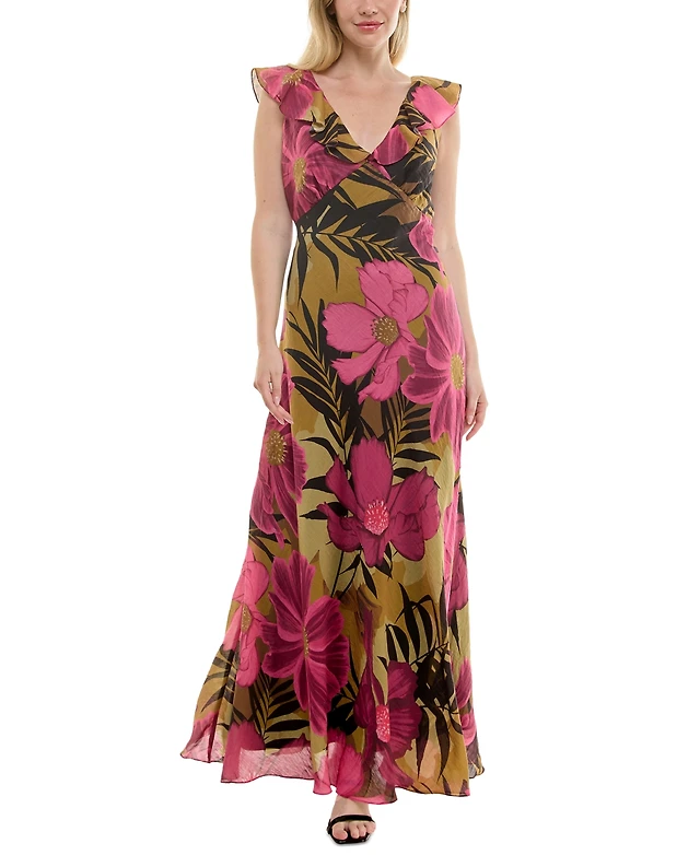 Taylor Women's Cascading-Ruffle High-Low Surplice-Neck Dress