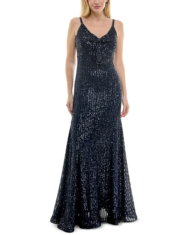 Taylor Women's Sequined Bow-Trim V-Neck Sleeveless Gown