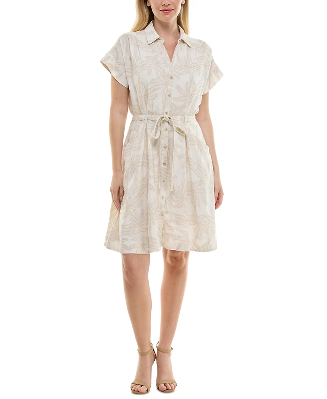 CeCe Women's Short-Sleeve Belted Midi Shirtdress