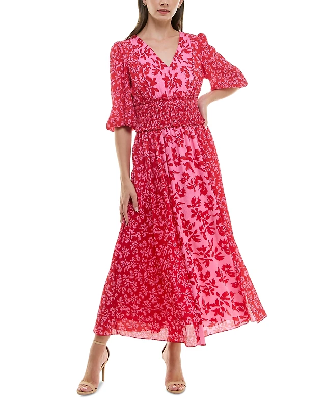 Taylor Women's Smocked-Waist Floral-Print Maxi Dress