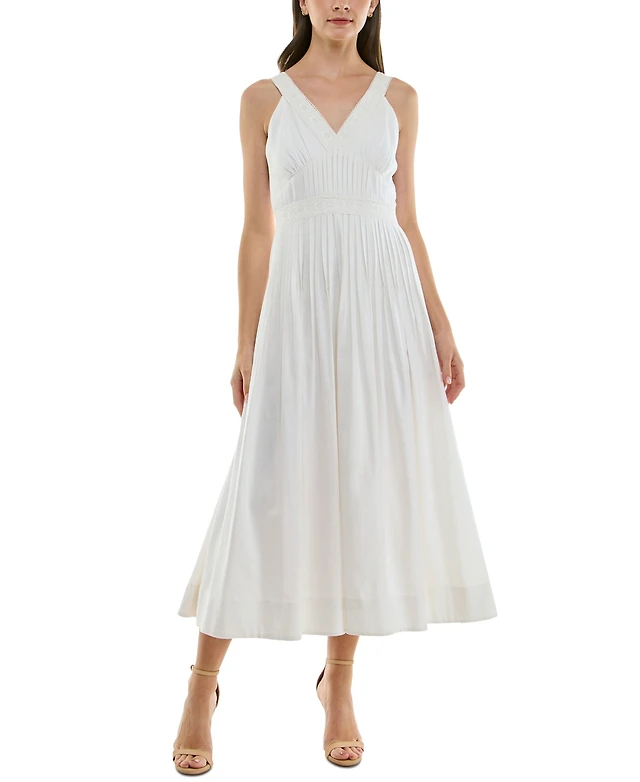 Taylor Women's V-Neck Lace-Trim Pleated A-Line Dress