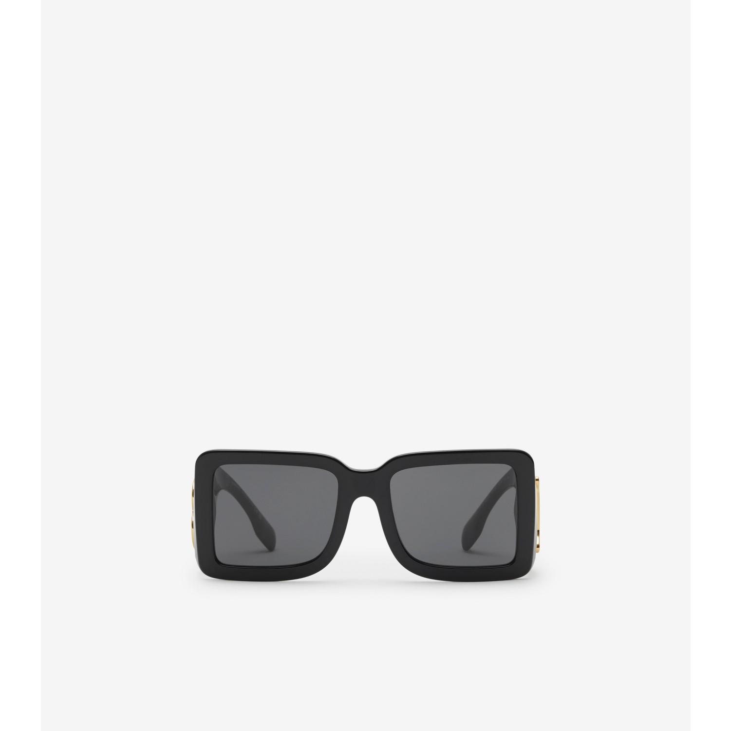 A pair of acetate sunglasses made in Italy, with wide temples featuring the Thomas Burberry Monogram. Scratch-resistant dark grey lenses with 100% UV protection Brushed metal hardware