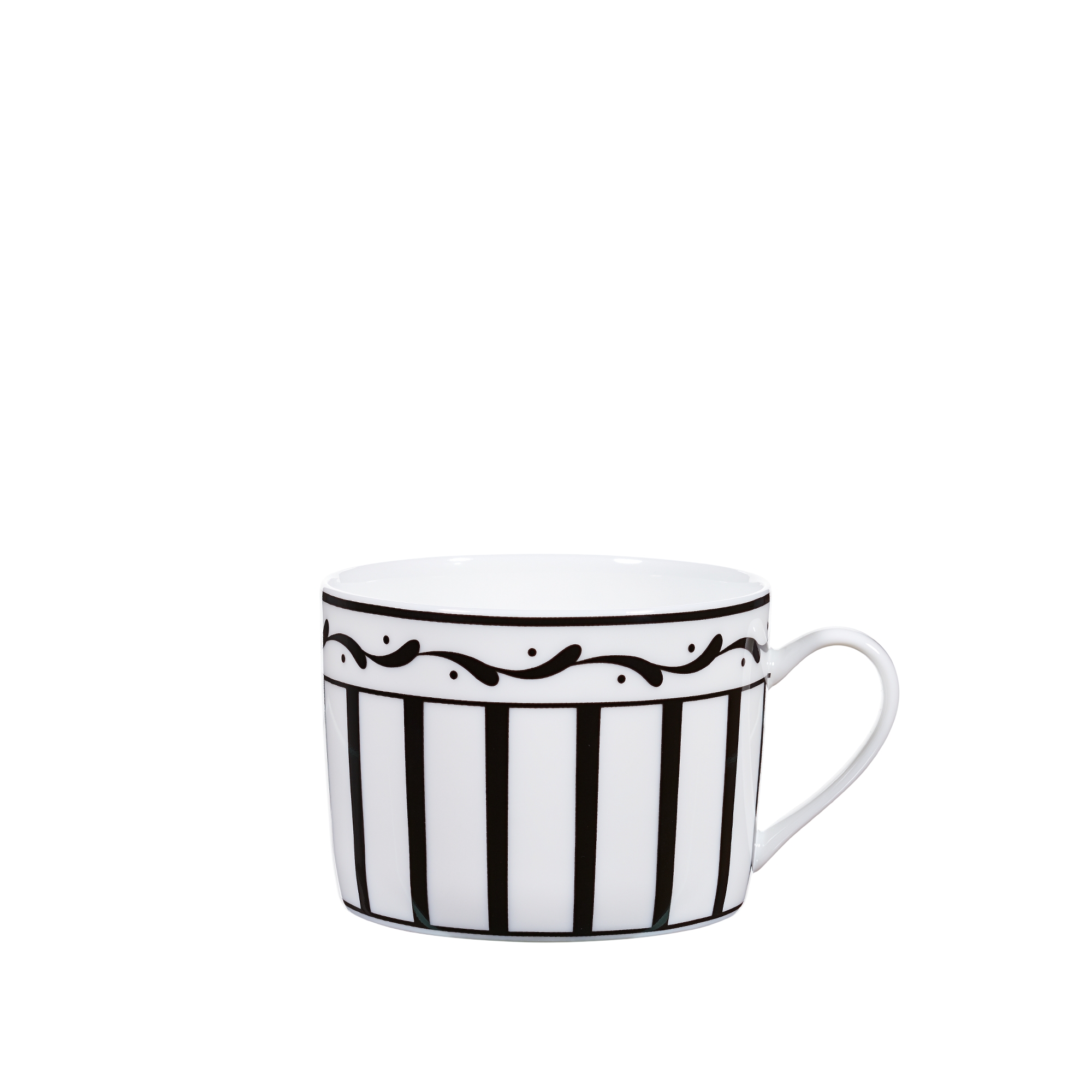 Teacup in extra fine Limoges porcelain with black and white stripes.