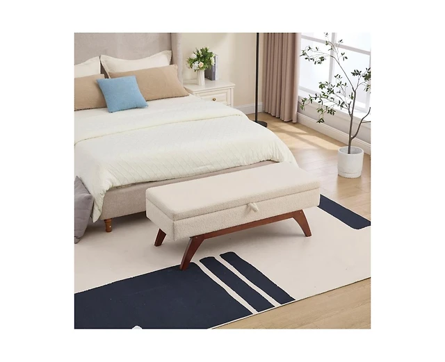 Teddy Storage Bench, Bed End Stool with Hidden Storage with Solid Wood Legs-The Pop Home