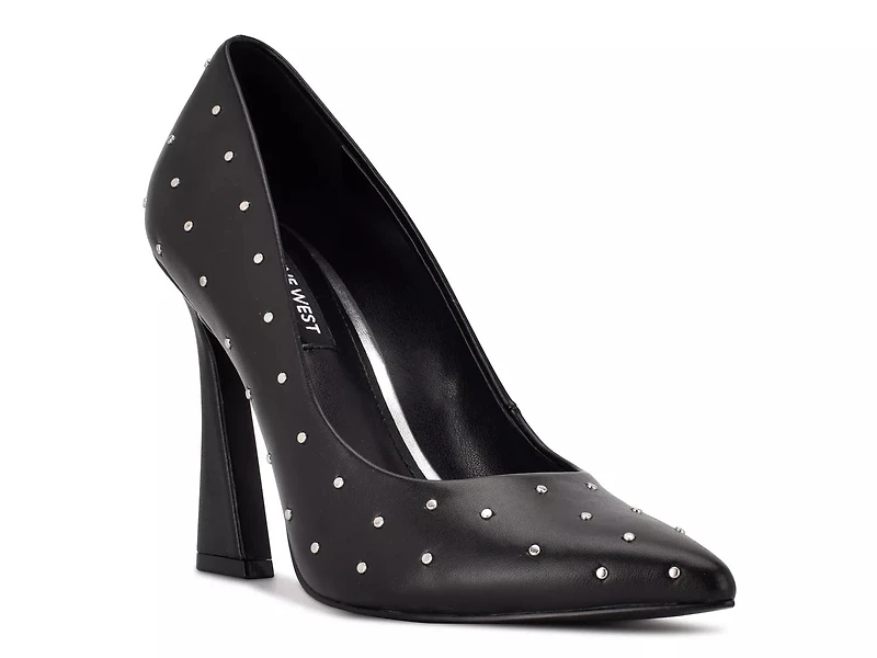 Don a flawlessly elegant look with the Tenry pump by Nine West. This classic pump gets a cool makeover with glistening stud details, smooth pointy toe and an incredibly stylish sculpted heel.