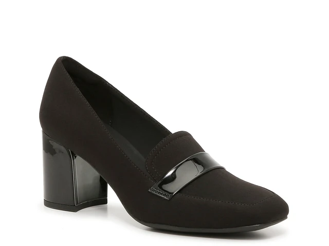 Add a professional touch to your look with the Teo pump from Anne Klein. Complete with a loafer-inspired upper, a moc toe, and glossy accents for a perfectly polished look.
