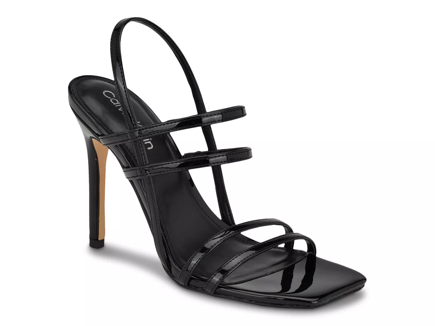 Sleek and elegant, the Teoni 2 sandal from Calvin Klein is a stylish staple. The glossy finish, chic square toe, and strappy details makes this pair a fashion-forward addition to your closet.