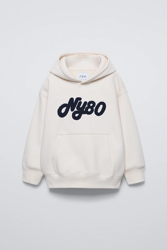 TERRYCLOTH TEXT HOODED SWEATSHIRT