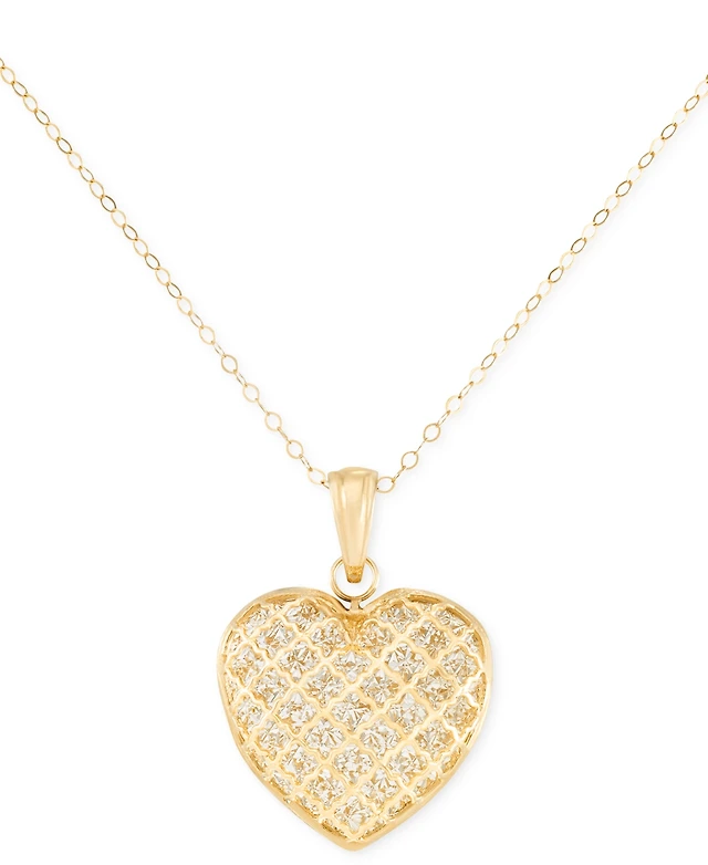 Textured Puff 17" Heart Pendant Necklace in 10k Gold
