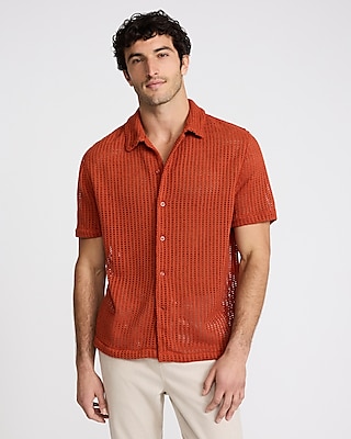 Textured Open Knit Short Sleeve Shirt