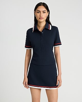 You have an everyday style in this textured polo featuring a red striped tipped design. Better yet, you can style with the matching skirt for the perfect elevated casual look.