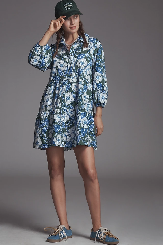 The Bettina Tiered Mini Shirt Dress by Maeve