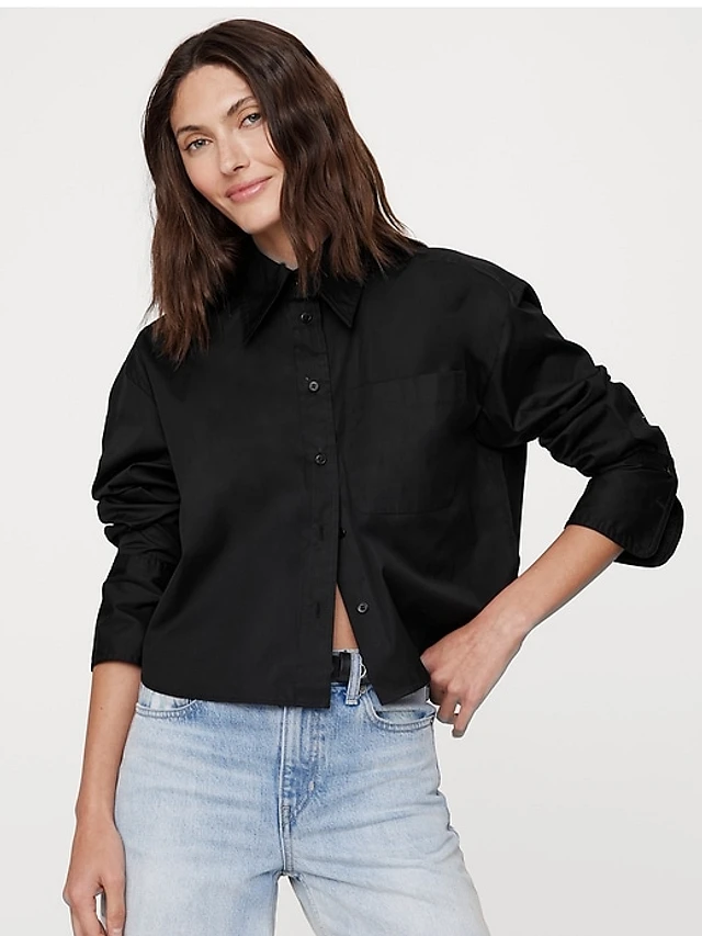 Cotton Poplin Cinched-Hem Cropped Shirt