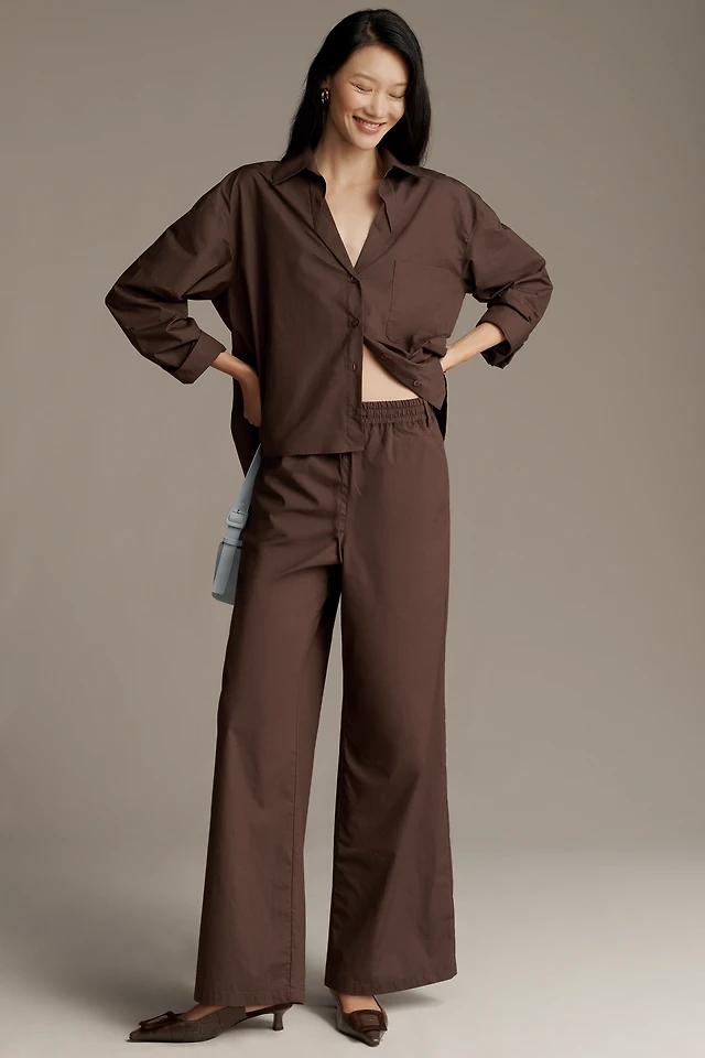 The Brooklin Poplin Tie-Front Pull-On Pants by Maeve