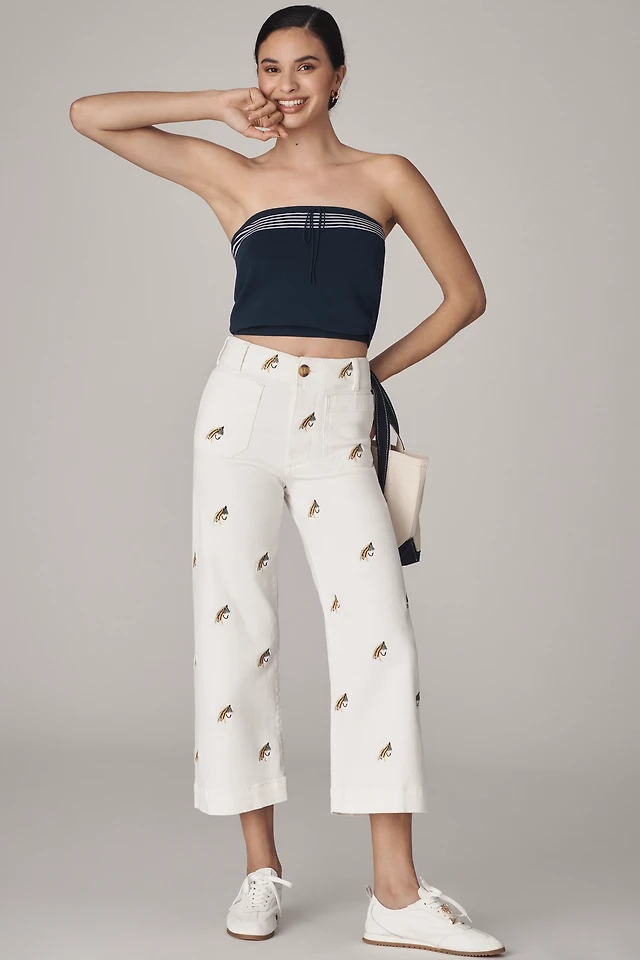 The Colette Embroidered Fishing Crop Wide-Leg Pants by Maeve