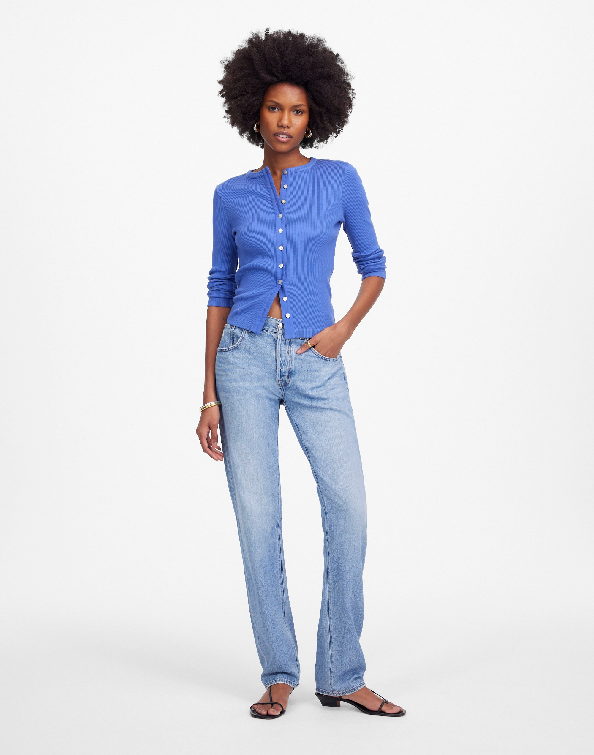 The cut: a new fit for your forever wardrobe that nods to the early 2000s, these jeans sit low on the hips with a relaxed straight leg and full-length inseam. Inspired by a vintage wash from our archives and featuring subtle distressing for a well-worn look.