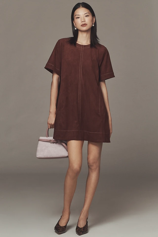 The Emmy Faux-Suede Short-Sleeve Mini Swing Dress by Maeve