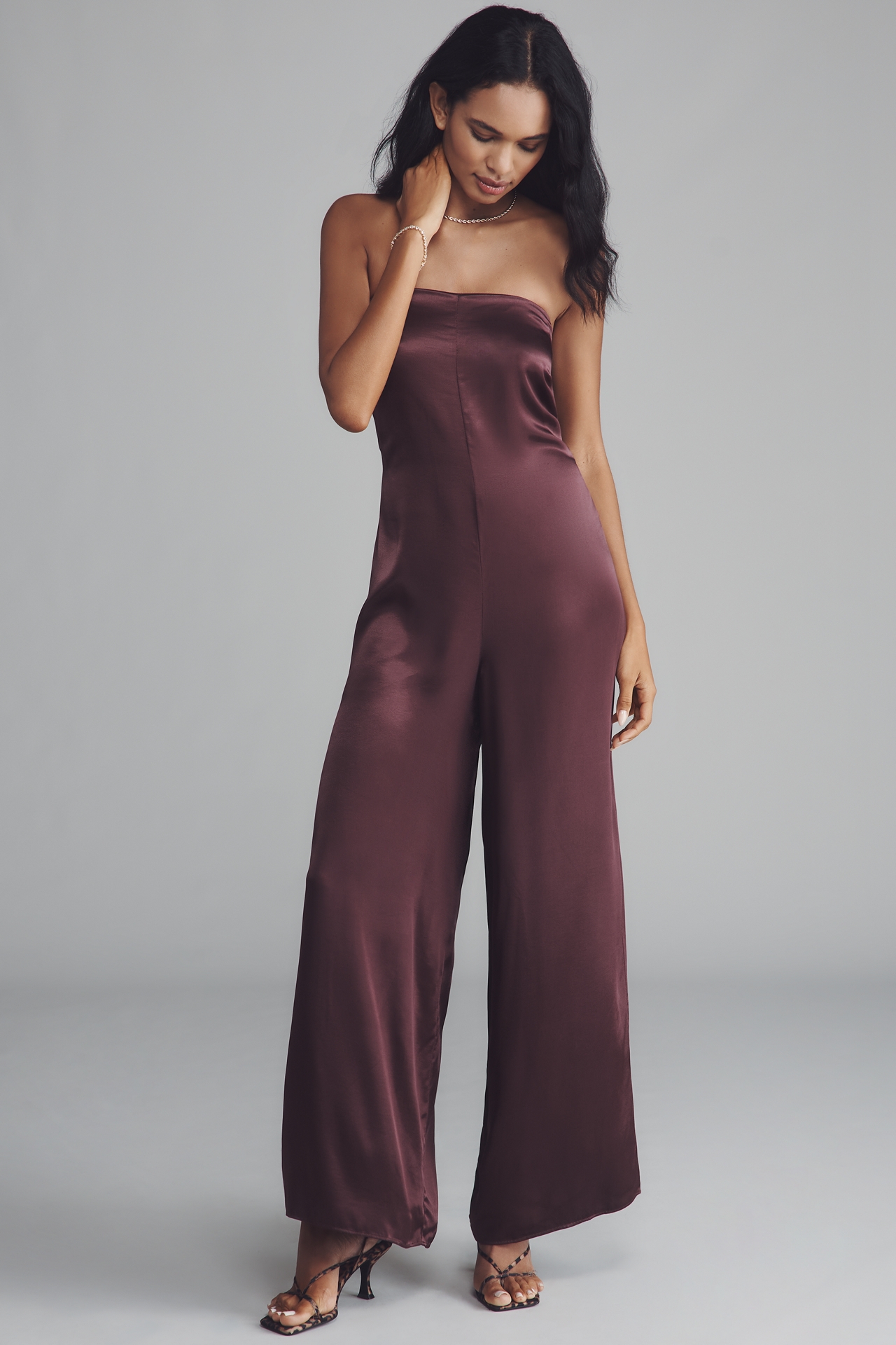 The Fleur Strapless Satin Wide-Leg Jumpsuit