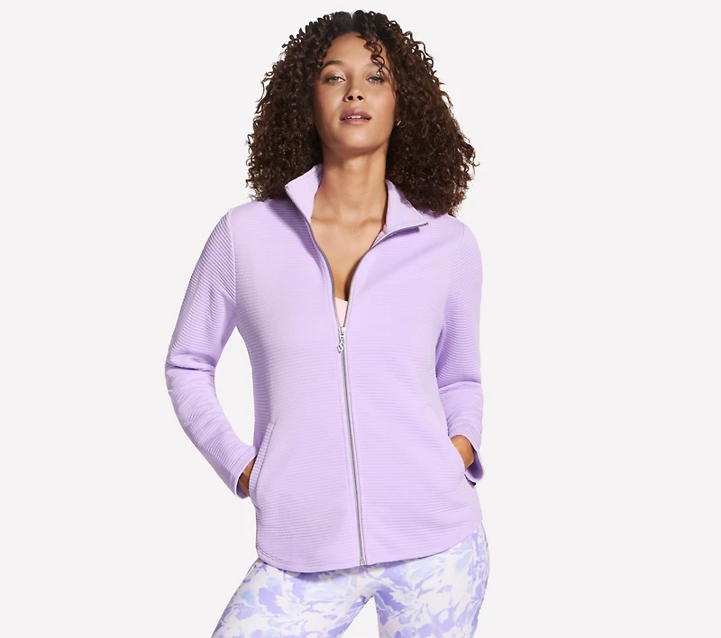 Stay active throughout the day in stylish comfort wearing Skechers GO WALK™ Shine Jacket. This sporty mock-neck layer is made from our breathable Soft Knit Ottoman™ rib fabric and features a zippered front with branded pull, a flattering scooped hem, and two welt hand pockets.