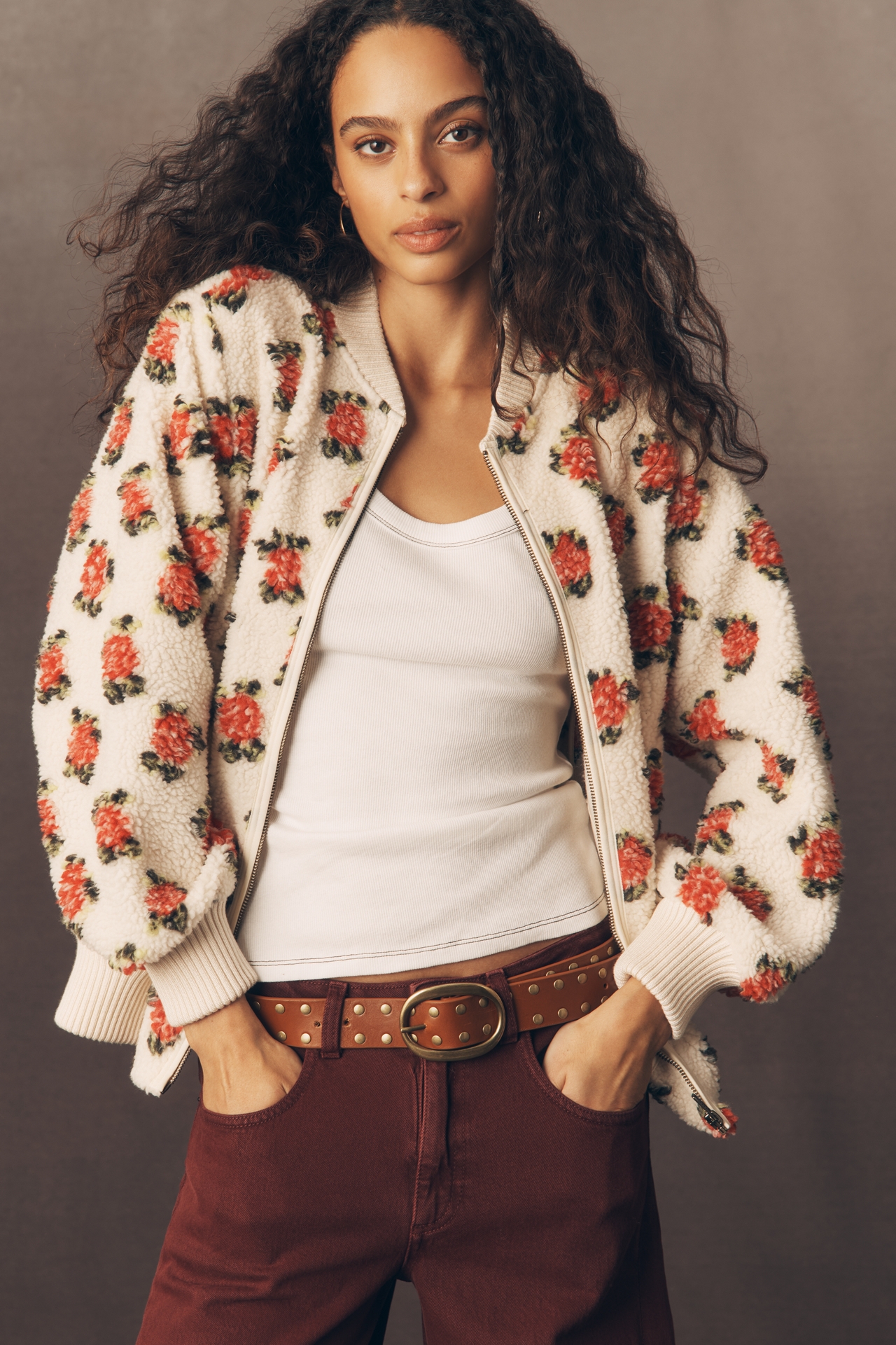 THE GREAT. Plush Faux Fur Bomber Jacket