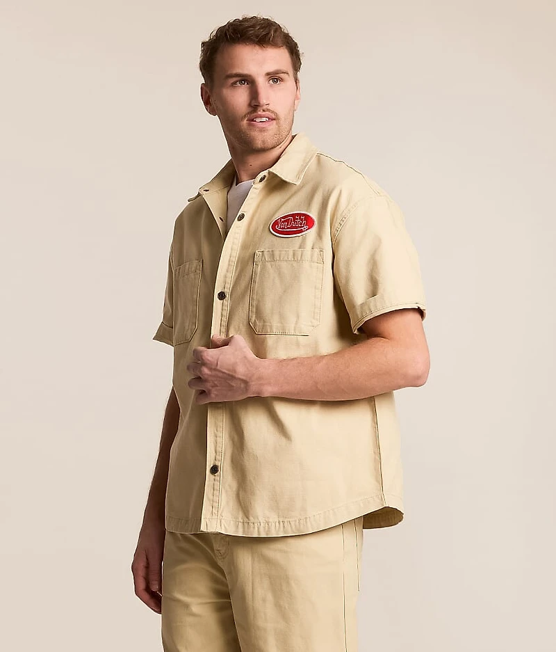Embroidered patch snap front shirt