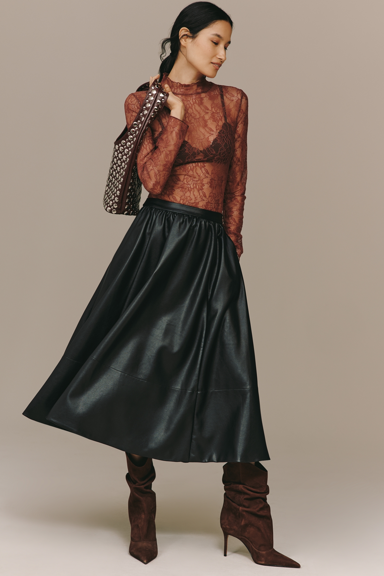 The Jacie Faux Leather Midi Skirt by Maeve
