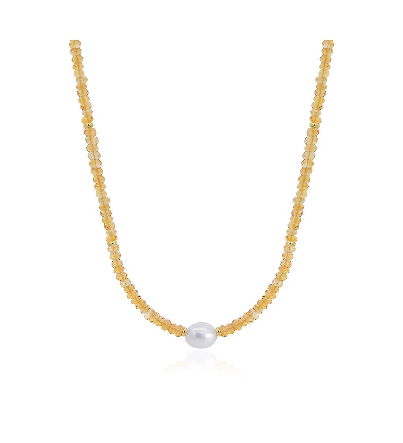 The Lovery Citrine Bead Pearl Necklace 14K Gold