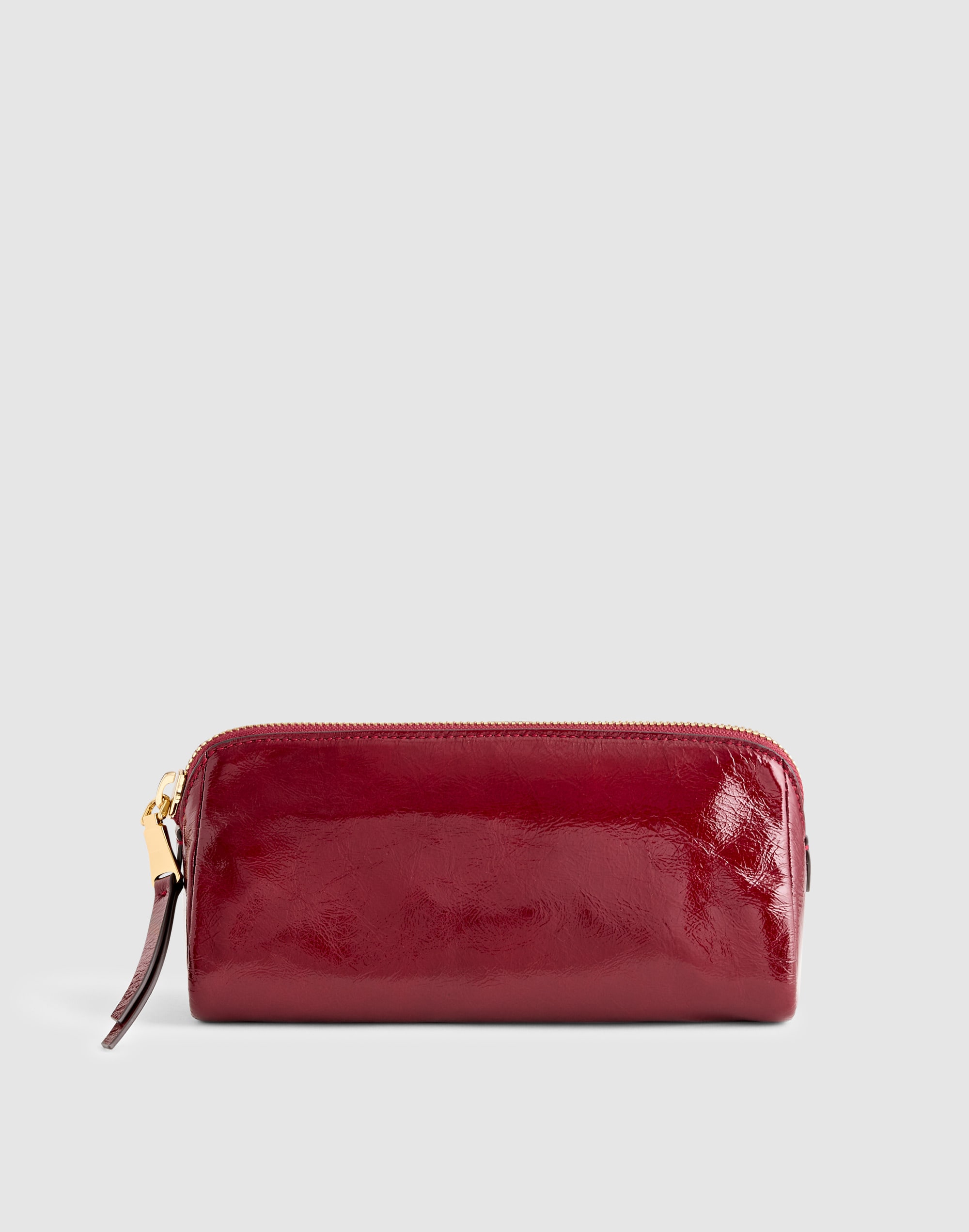 Crafted from textured patent leather, this makeup pouch is perfectly sized for your daily essentials. It's finished with a large metal zipper pull for a modern touch.