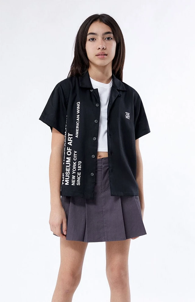 The Met x Pacsun Seersucker Cropped Button Up Long Sleeve Shirt