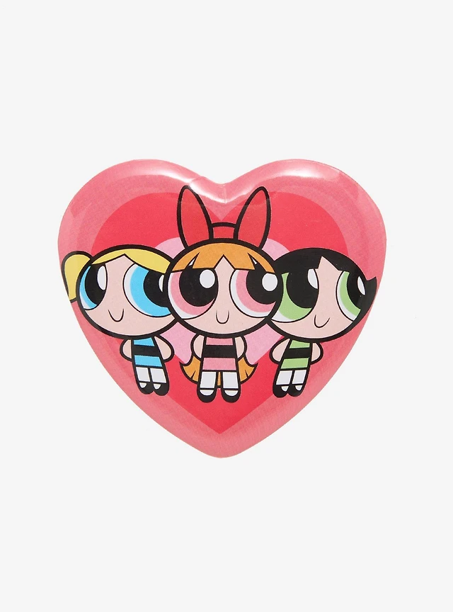 The Powerpuff Girls Group Portrait Heart Button Pin