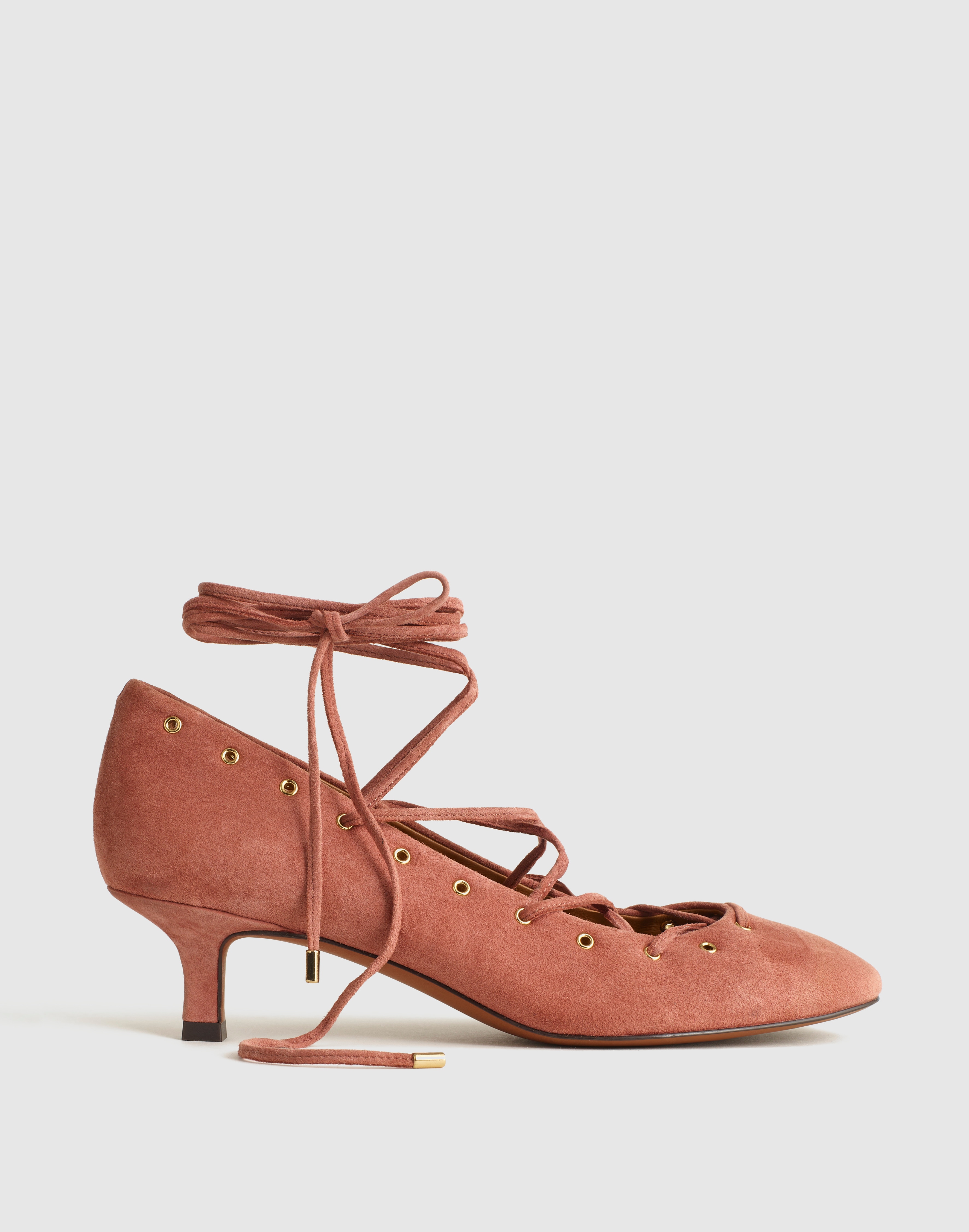 An elegant play on a classic, these suede pumps feature a round toe, adjustable lace-up detail and a walkable kitten heel making it a day-to-night superstar. They're complete with our signature MWL Cloudlift Lite padding for maximum comfort.