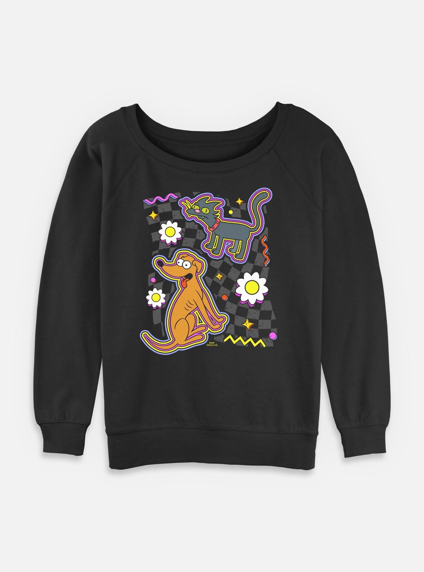 The Simpsons Cat Dog Floral Retro Womens Slouchy Sweatshirt