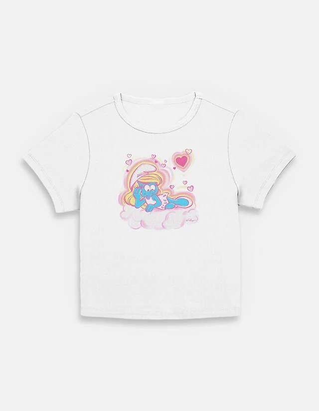 The Smurfs Airbrush Hearts Youth Girls Boxy Crop T-Shirt