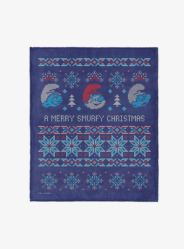 The Smurfs Merry Smurfy Silk Touch Sherpa Throw Blanket