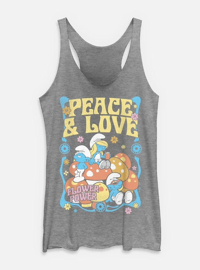 The Smurfs Peace & Love Flower Power Womens Oversized T-Shirt
