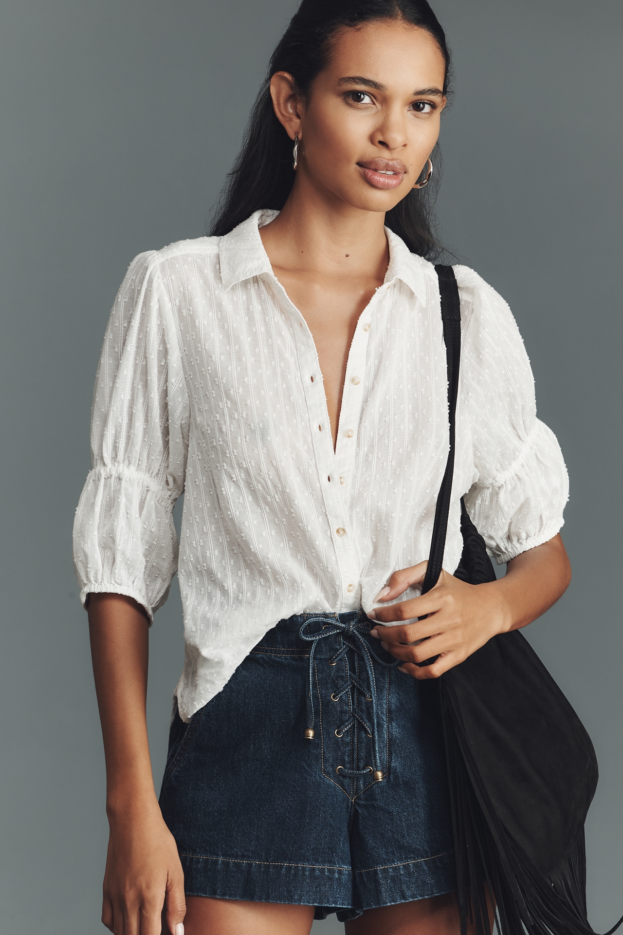 The Tallulah Puff-Sleeve Buttondown Top by Pilcro