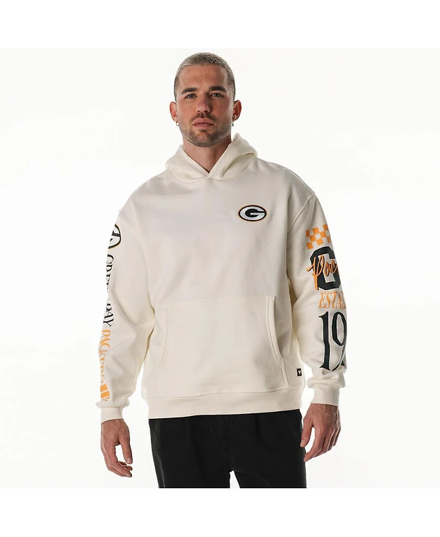 The Wild Collective Men's and Women's Cream Green Bay Packers Stacked Graphic Sleeve Fleece Hoodie