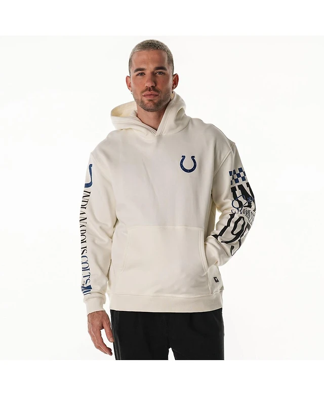 The Wild Collective Men's and Women's Cream Indianapolis Colts Stacked Graphic Sleeve Fleece Hoodie