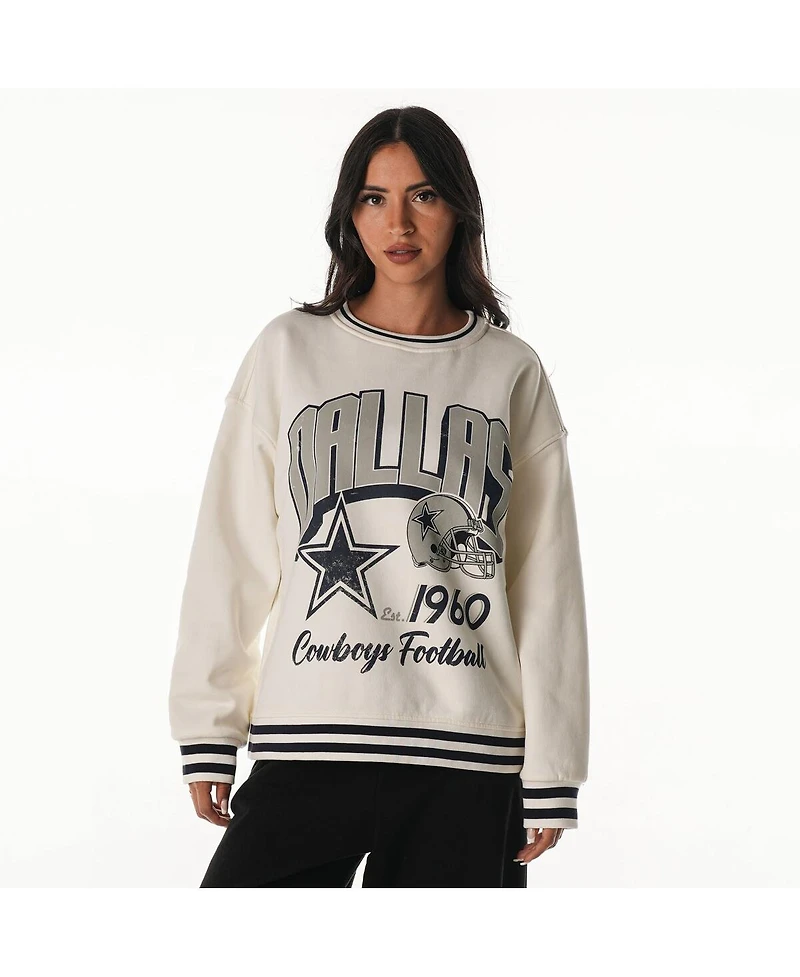 The Wild Collective Women's Cream Dallas Cowboys Oversized Vintage French Terry Sweatshirt