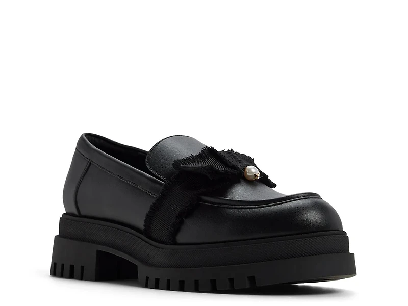 Upgrade your wardrobe with the Theatric platform loafer from Aldo. Frayed grosgrain ribbon and pearl accent on the vamp give a trendy update to this classic slip-on. Its padded dual-density foam insole and lightweight, flexible cushion sole keep your feet comfortable all day.